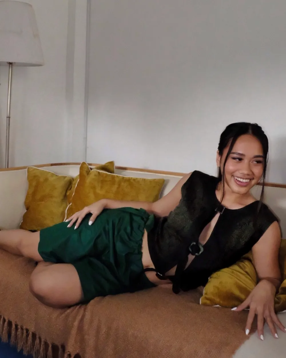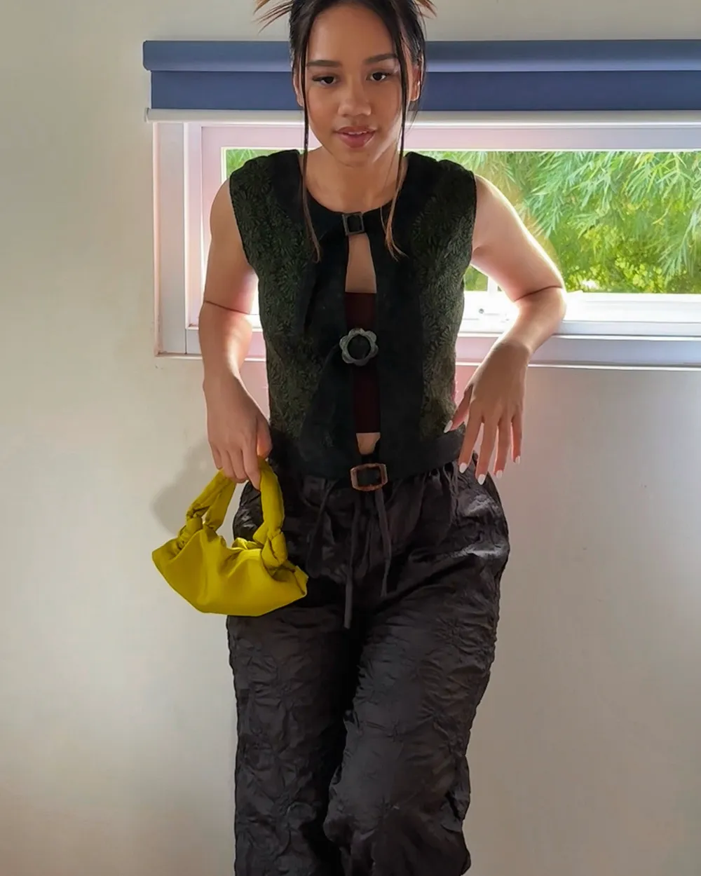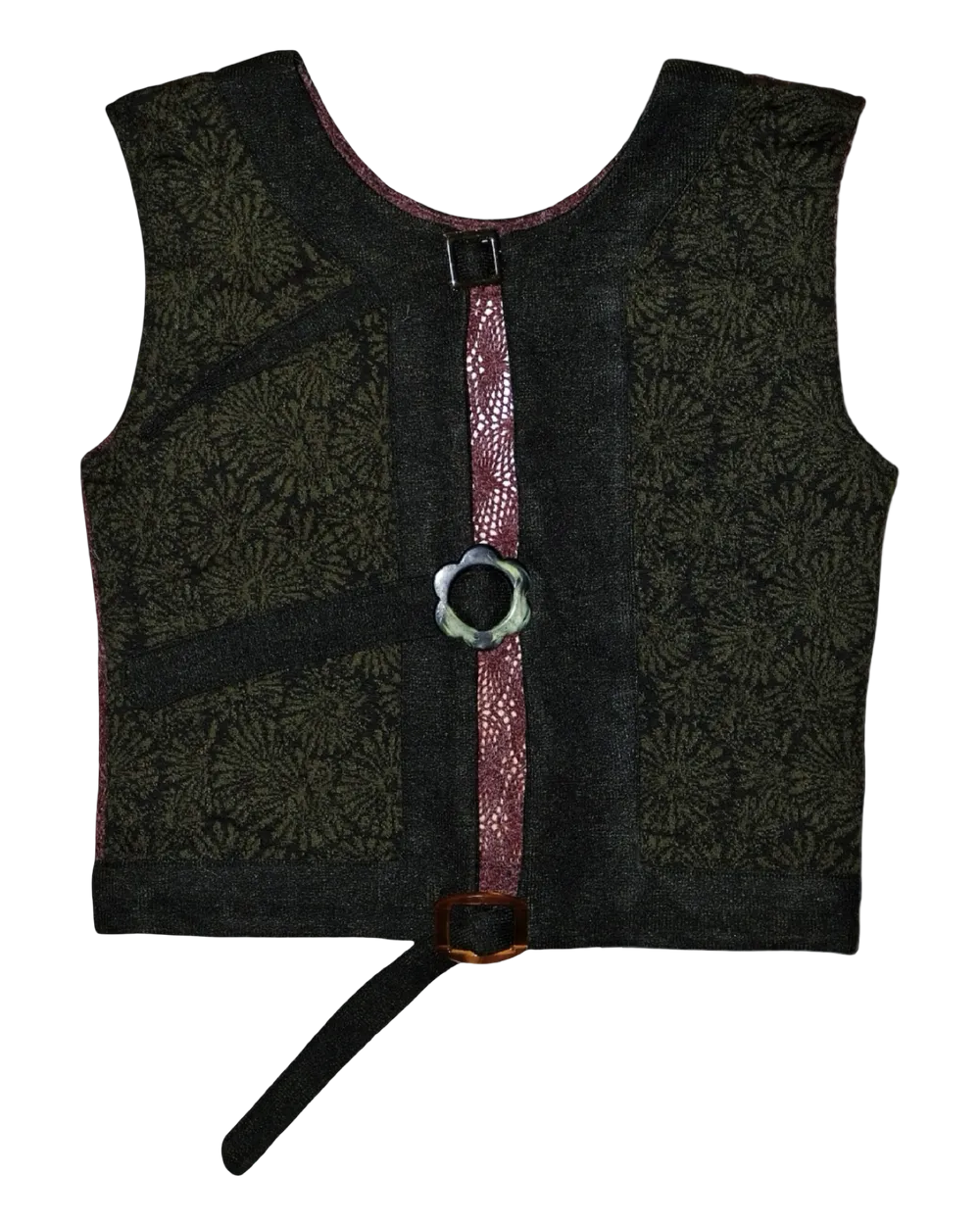 Designed with three adjustable buckles at the front for a customizable fit and a distinctive look. The piece can be worn both ways, allowing you to style it front or back for different looks.